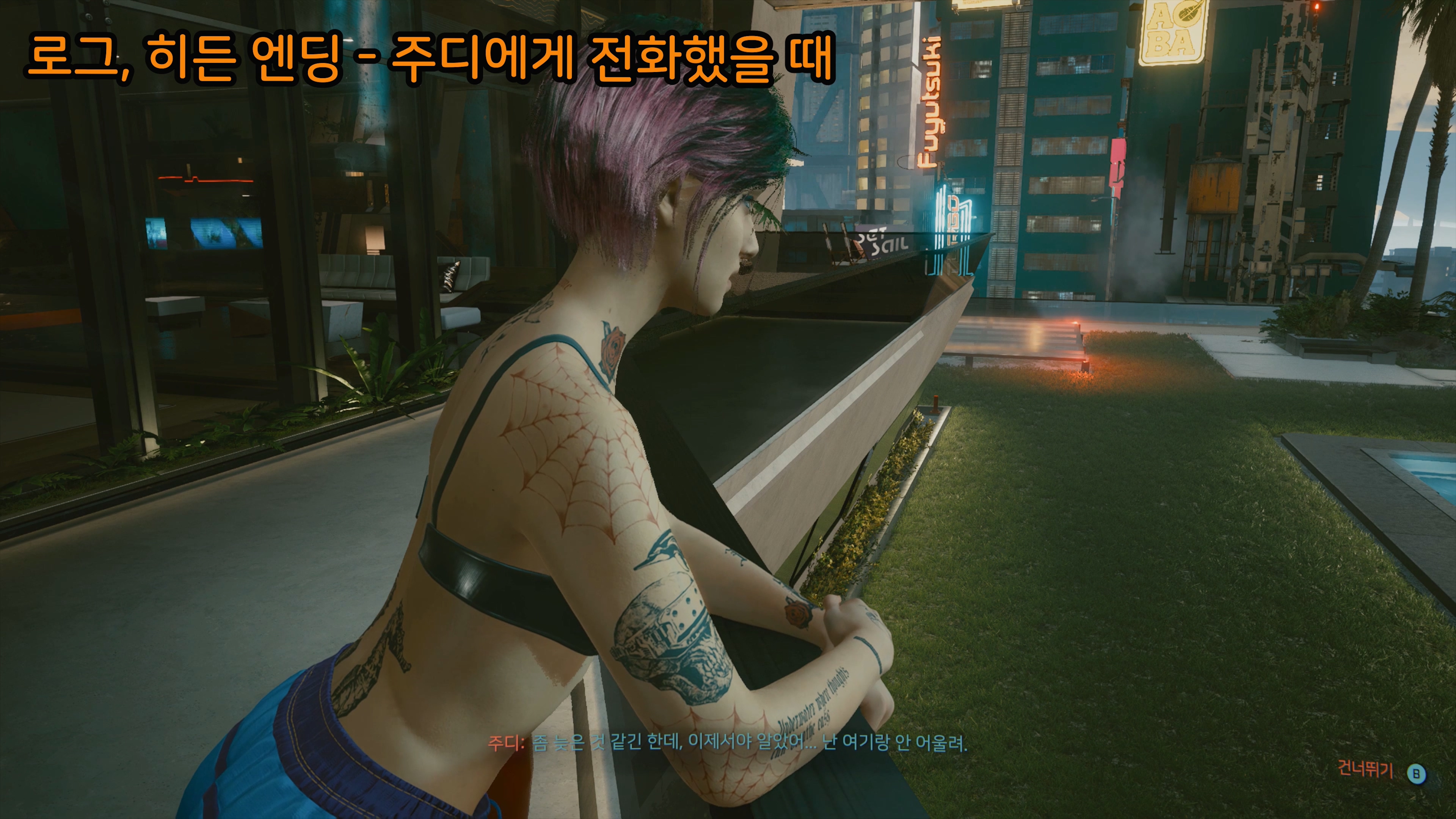 나이트시티의 여왕이 되는 로그 엔딩에서는 해피하지 못합니다.