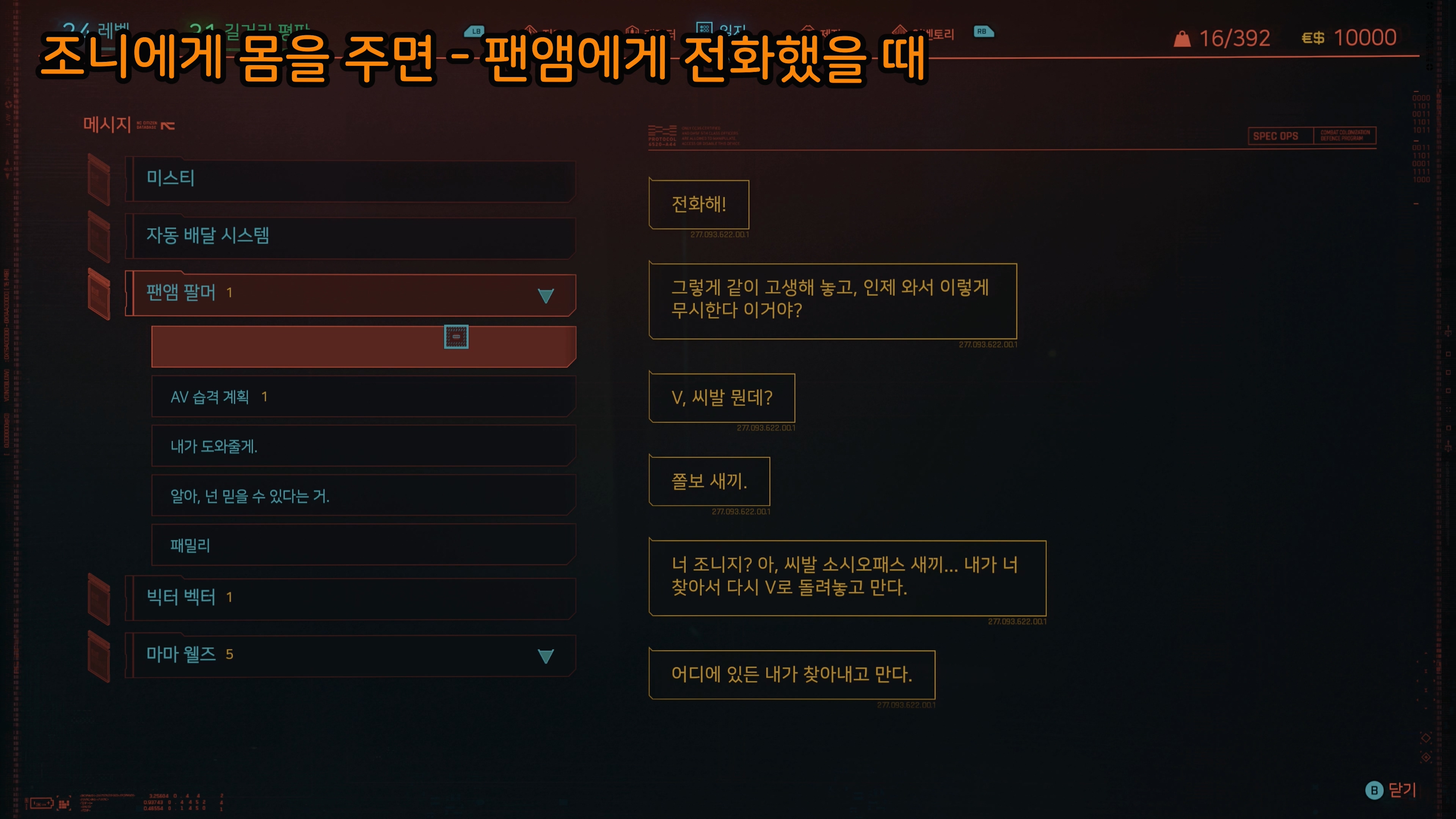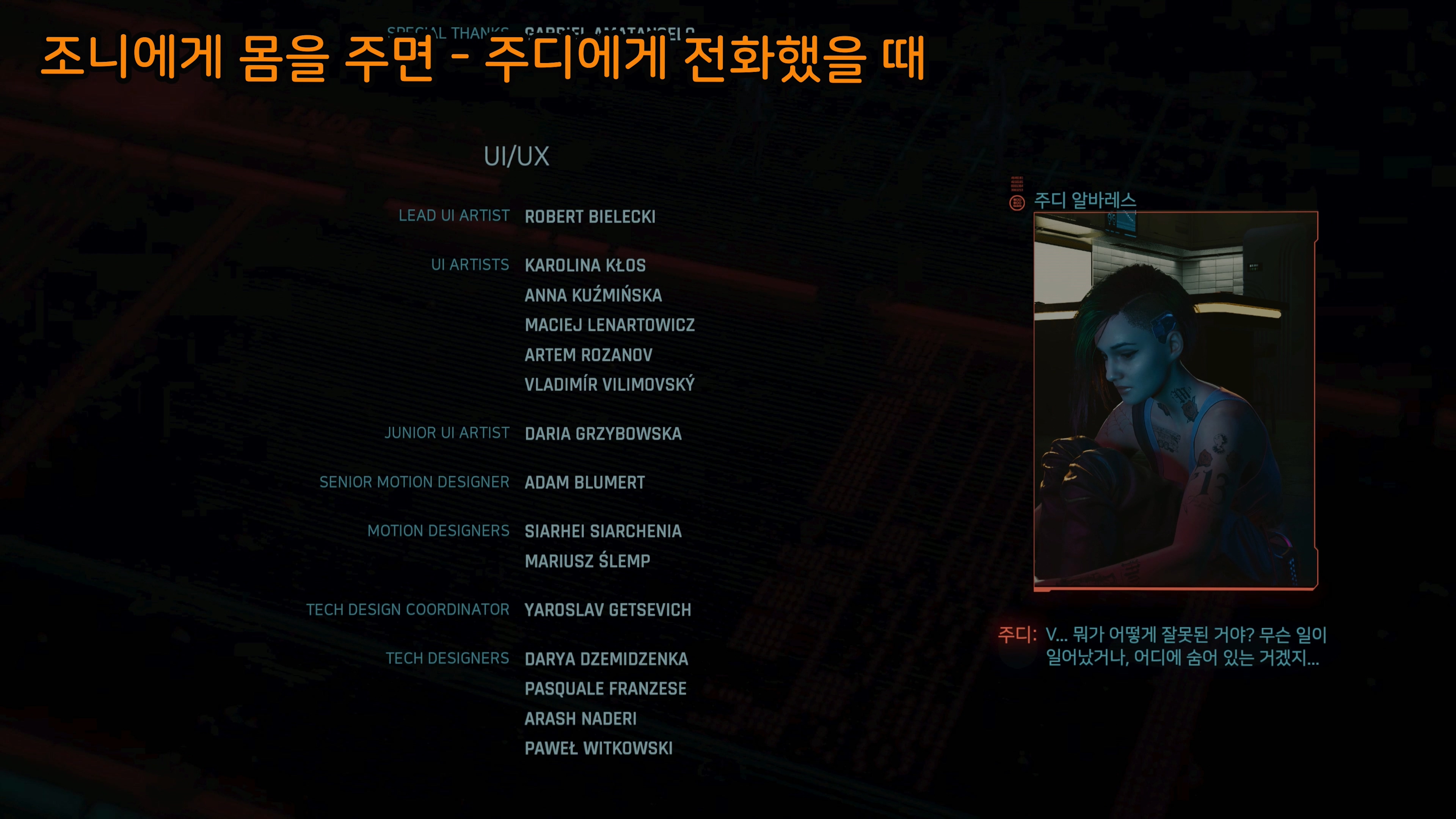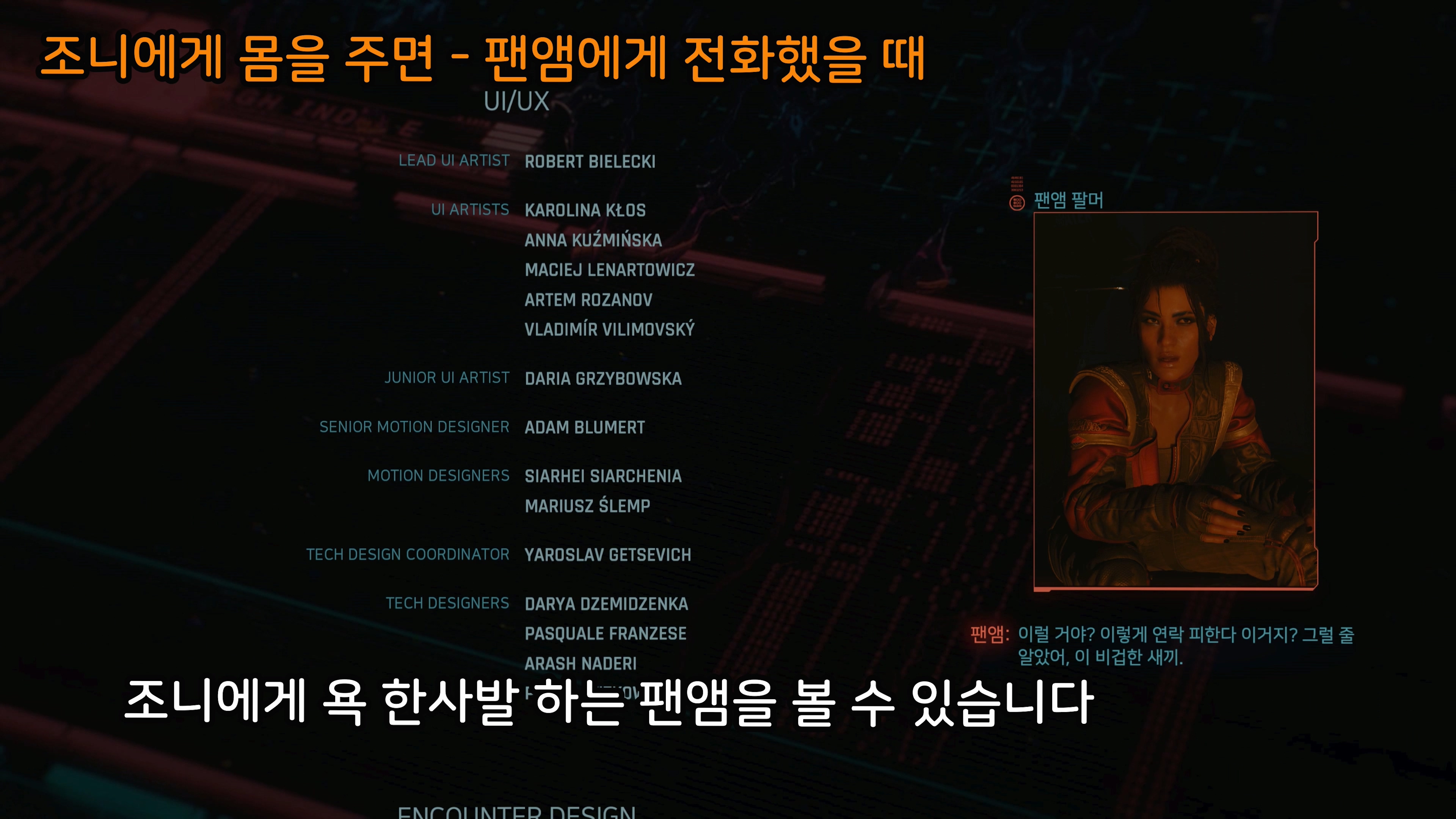 엔딩 전 조니와 대화에서 누구에게 전화를 걸지 고민하게 되는데